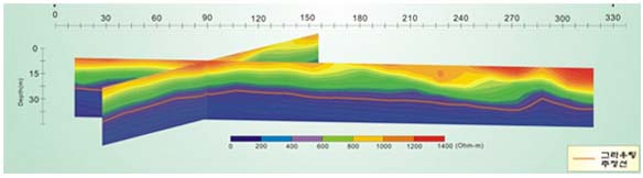 지반의 층서구조, 단층(특히 숨은 활성단층등), 퇴적층 밑에 있는 기반암 표면의 형태등에